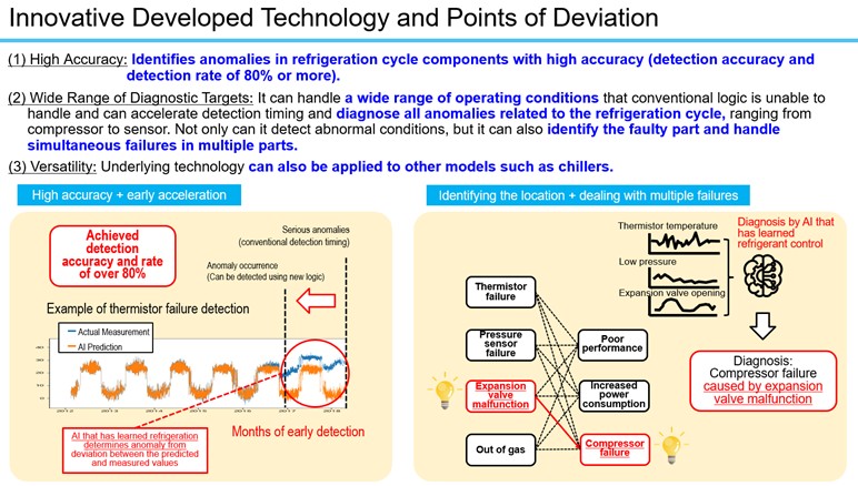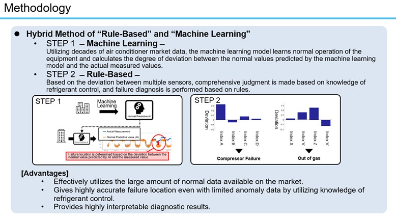 Previous rule-based failure diagnosis methods were unable to fully track changes in ambient temperatures and operating conditions, but Hybrid AI Failure Diagnosis uses machine learning to track these changes, improving the comprehensiveness of failure diagnosis.